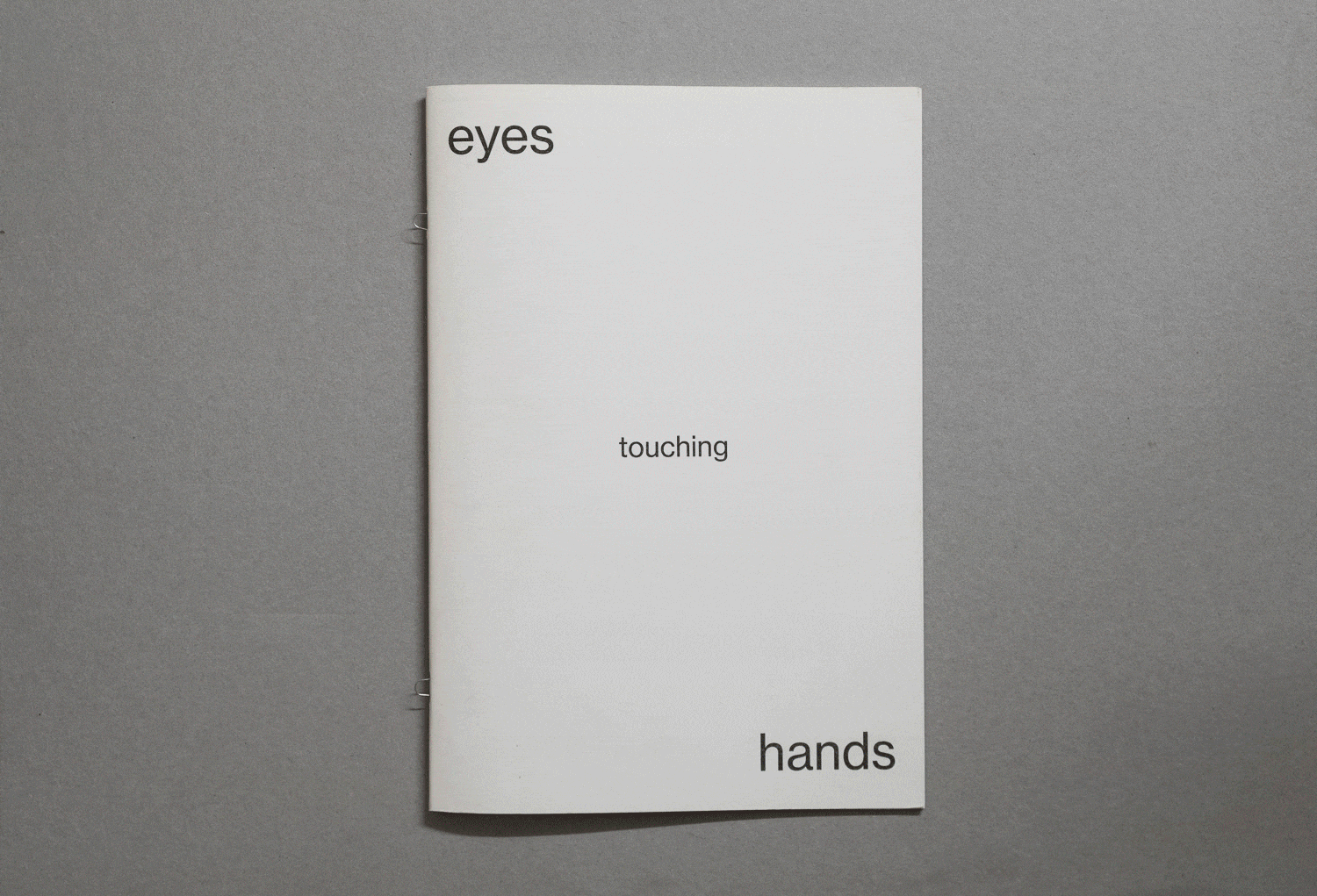 This publication is not a documentary catalog but freely selects and manipulates images taken from the same exhibition. It represents a subjective vision. A fragment. The trust placed in our visual capacity is complete: what we see corresponds to a truthful and reliable fact. It is as if sight enjoys a privileged state compared to the other senses, a truthfulness attributed by birth. Eyes touching hands examines this assumption through the site-specific project of the artist Luca Spano.