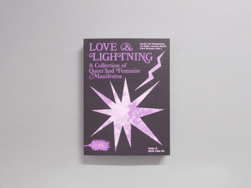 Love & Lightning: A Collection of Queer and Feminist Manifestos è una raccolta tematica e inconclusiva di manifesti queer, femministi e queer-femministi. La rivista Girls Like Us e l’autrice Sarah van Binsbergen hanno realizzato una pubblicazione che mostra le diverse forme che un manifesto può assumere, dai formati classici e attivisti ai testi più poetici e associativi. I manifesti evidenziati in questo libro attraversano confini, forme e discipline, rifiutano la logica binaria, trascendono i nostri concetti di tempo e spazio e superano la logica neoliberista.