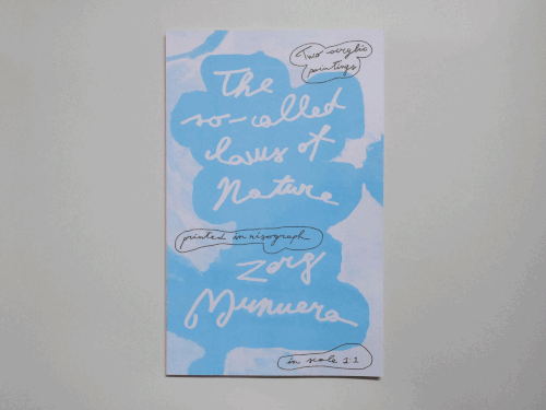 Il progetto è nato nel settembre 2023, durante la residenza artistica di Zorg Munuera presso il nostro Atelier di Bologna. La pubblicazione presenta due dipinti acrilici dell’artista, in scala 1:1, ciascuno delle dimensioni di 150 x 125 cm, della serie “The So-Called Laws of Nature” realizzata tra il 2022 e il 2023.
